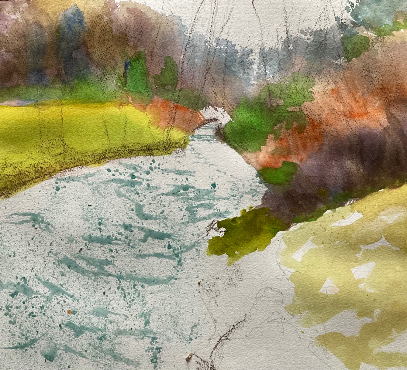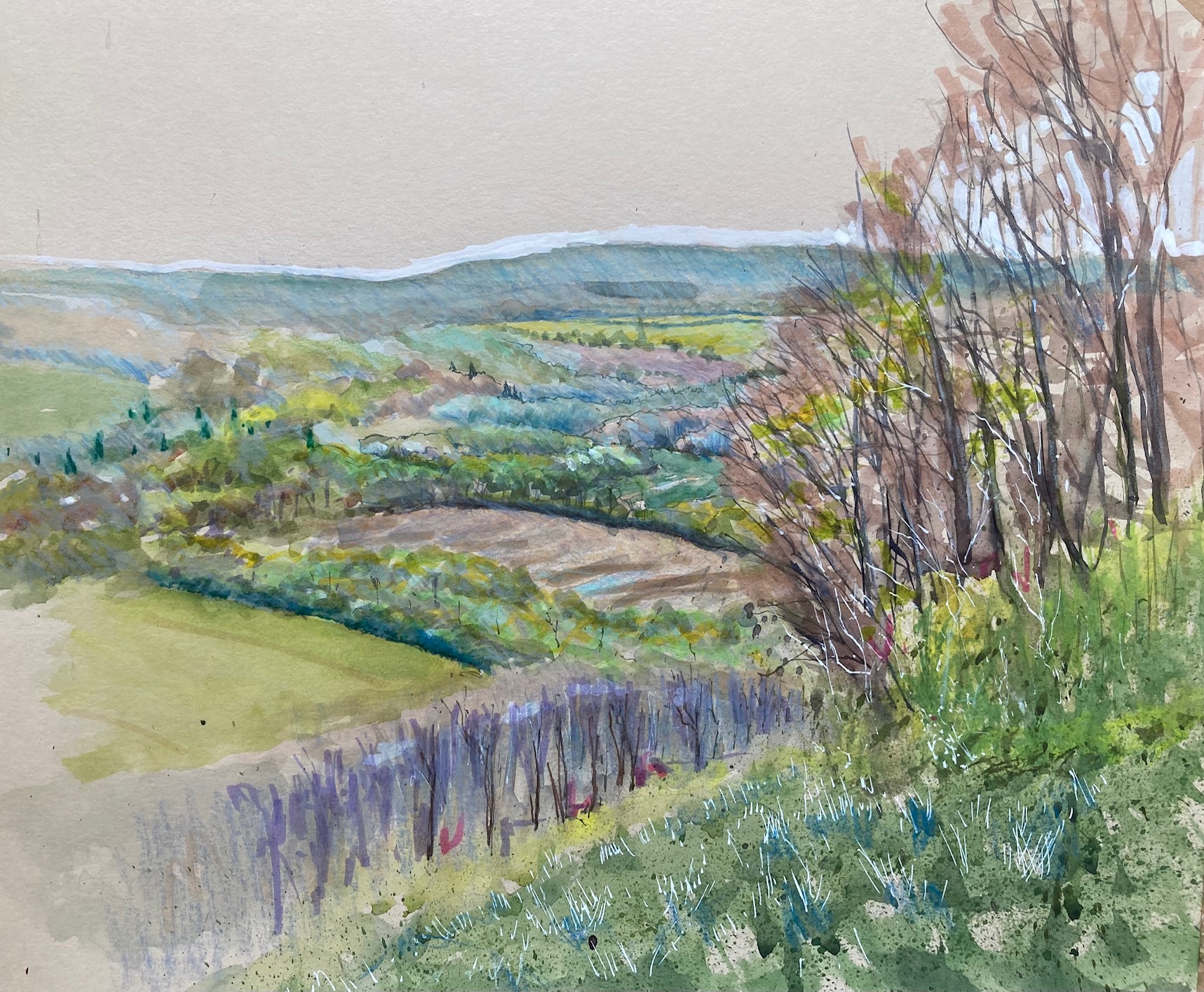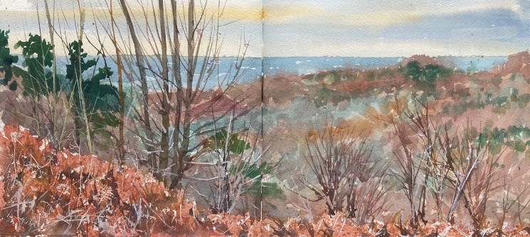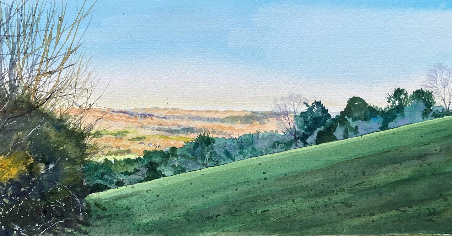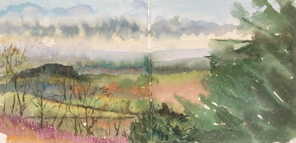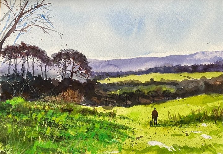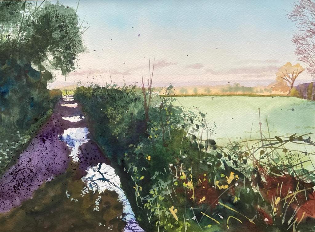 I’m going to try and show the paintings by location as this could be the most relevant connection with my viewers. All are local scenes to me – Surrey, UK – mostly started plein air but others are from photos I’ve taken on walks with the dogs.