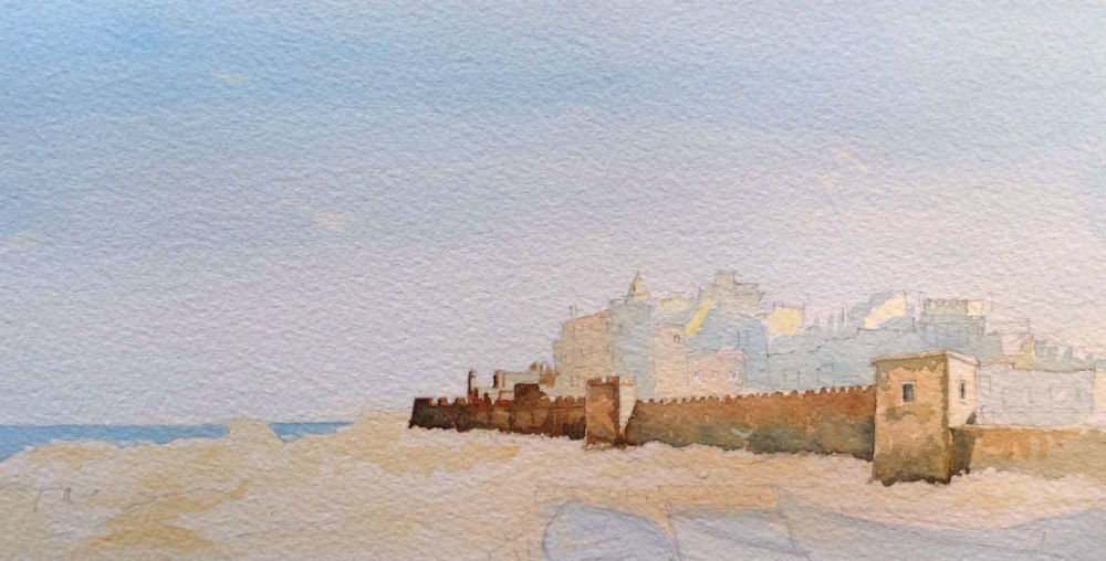 I liked the way the city appears out of the mist and this reminded me of the first day when the sea mist had rolled in, making everything very mysterious. Of course I couldn’t leave it alone and had to add more detail . Here is the finished piece.