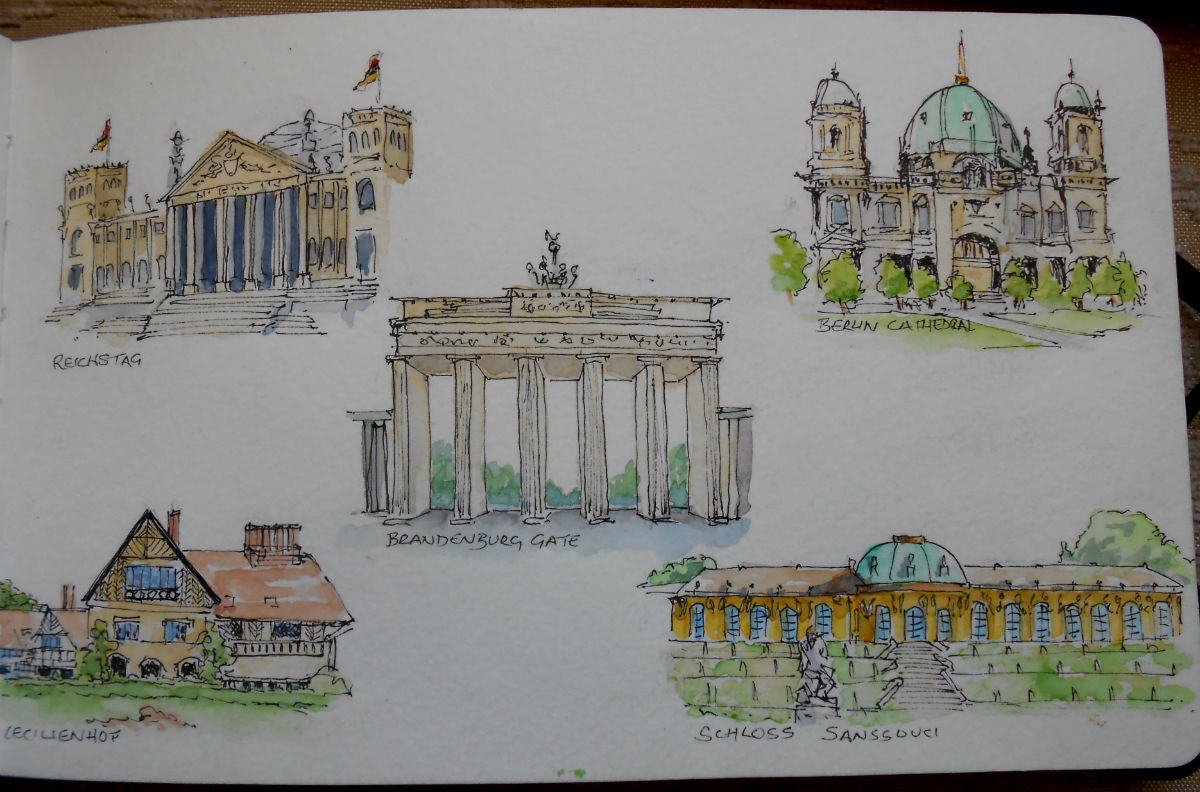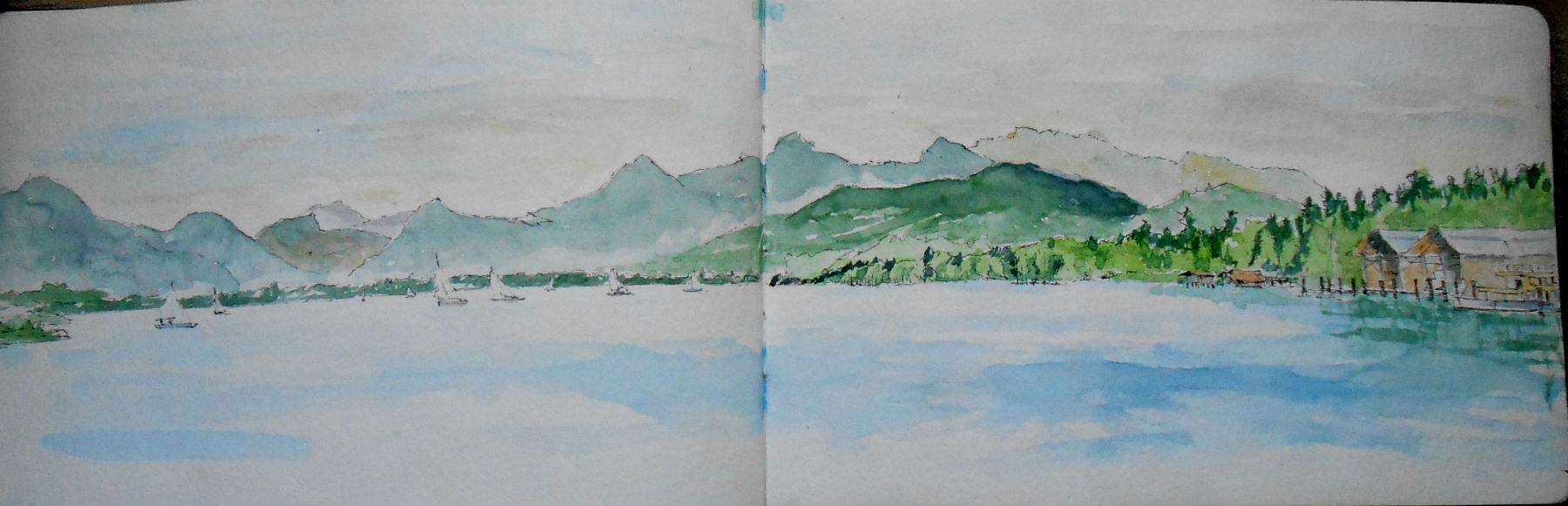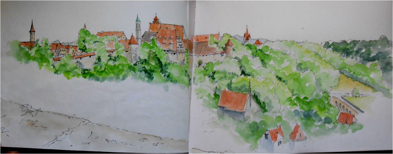 An early start along the German Alpine Road took us through Bad Toltz, a pretty spa town and where I bought my only souvenir for the holiday, a x3 Faber pencil sharpener. Sad really but who needs souvenirs when you have a camera and sketchbook. Moving on we reached the Berchtesgaden Alps and stayed in a comfortable hotel besides the fast running and light blue Ache river. I tried sketching the wonderful sunset on the mountains from our bedroom balcony but I was too late and my mind was not in tune.