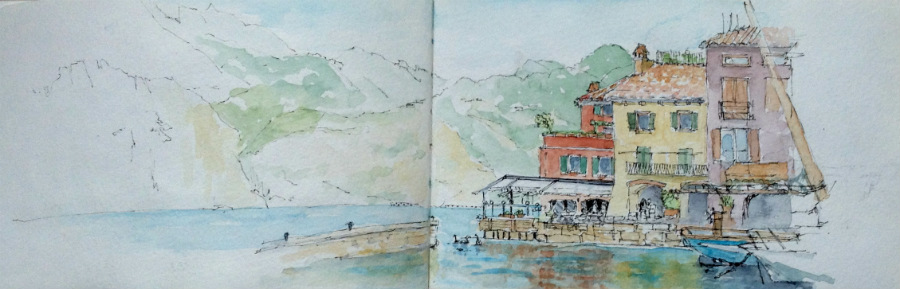 The next painting is of a row of cottages running off Church Street. I liked the simple subject, colour of the brickwork and the perspective. I’ve treated the trees in the background slightly differently and feel this has worked.