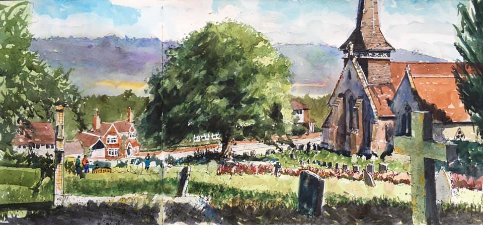 Mixed weather this month from heat wave to the coldest Bank Holiday on record! I’ve been able to get out when the weather was good and here are my outdoor paintings.